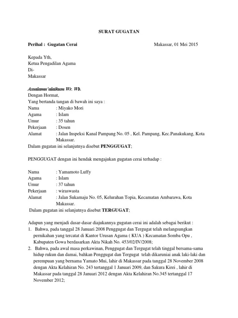 Contoh surat gugatan cerai dan jawaban - Petitum surat jawaban dan gugatan balik. The collection that consisting of chosen picture and the best among others. Pelayanan ptsp dari pukul 9 00 wib s d.